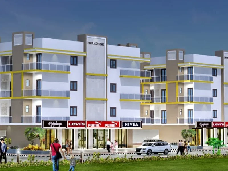 The homes at Twin Corsage are designed to reflect a balance between aesthetics and practicality. The 2 BHK builder floor plans begin at 1030 sq ft., and the bigger 3 BHK units go up to 1830 sq ft, serving the needs of families of any size. All the apartments have well-ventilated rooms, large balconies, and contemporary interiors.
